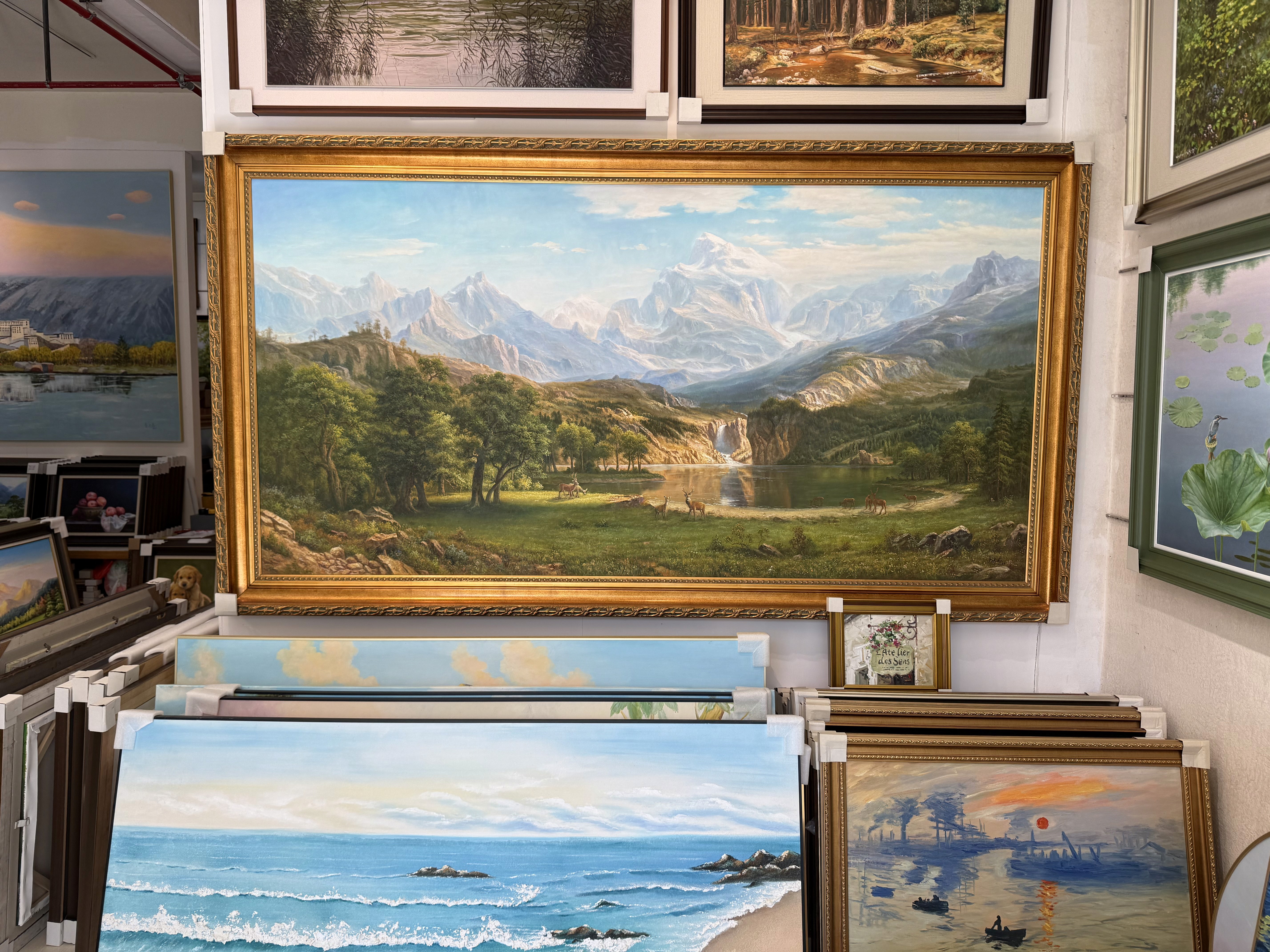 在来之前,我听过无数关于这里的传说:整整几代人以复制世界名画为生;一张画的价格和一顿午餐差不多;这些作品被源源不断地出口到欧美,进入酒店、办公室,甚至某些“看起来很像博物馆”的空间。真正走进大芬之后,你会发现,这些传说大多都是真的。
