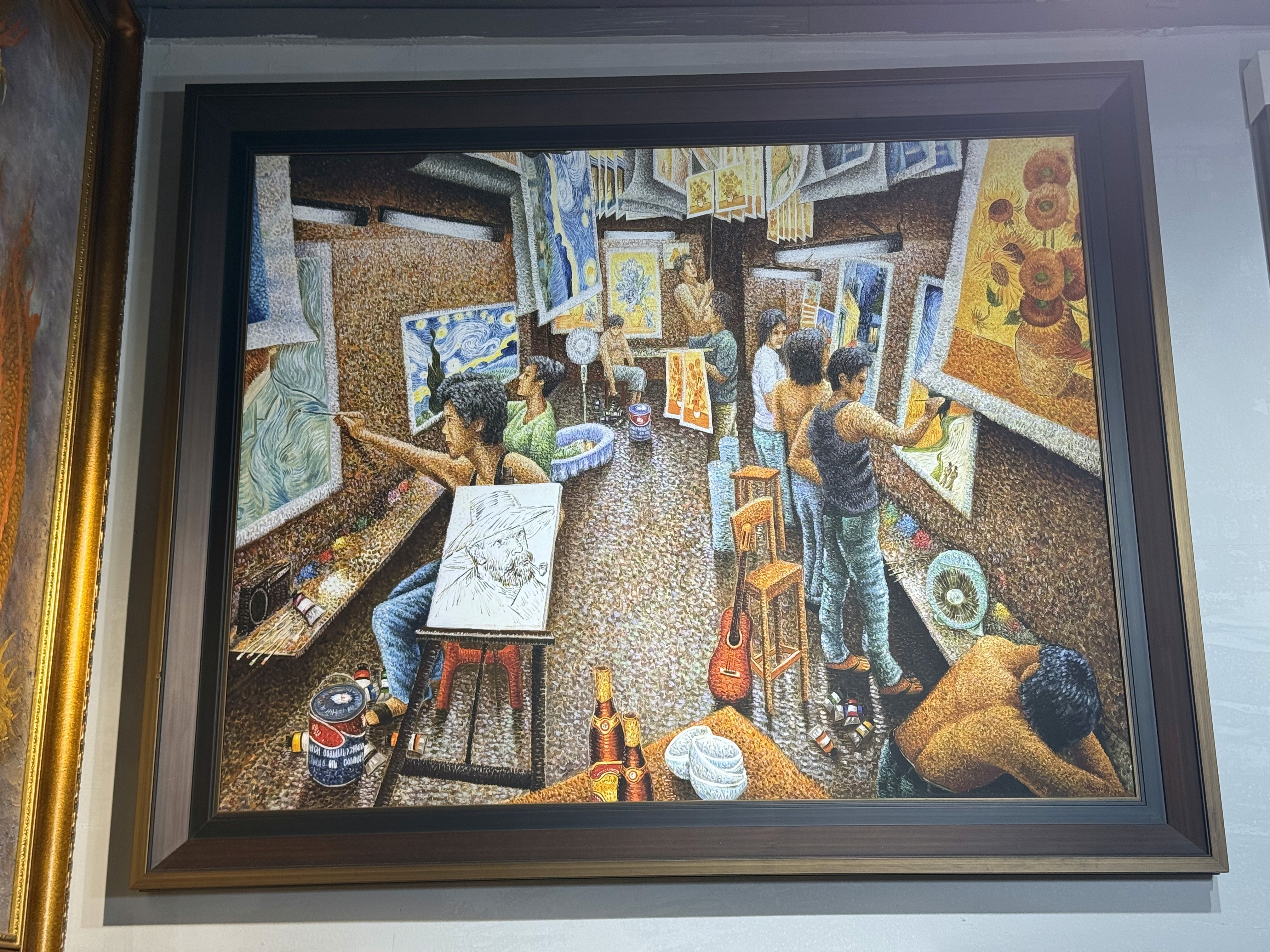 在这里,你可以用十美元买到一张小尺寸的“梵高”;三十美元,就能带走一张尺寸相当、完成度不错的版本;如果你想要一张大到可以铺满整面墙的《星空》,也完全没问题——这里应有尽有。